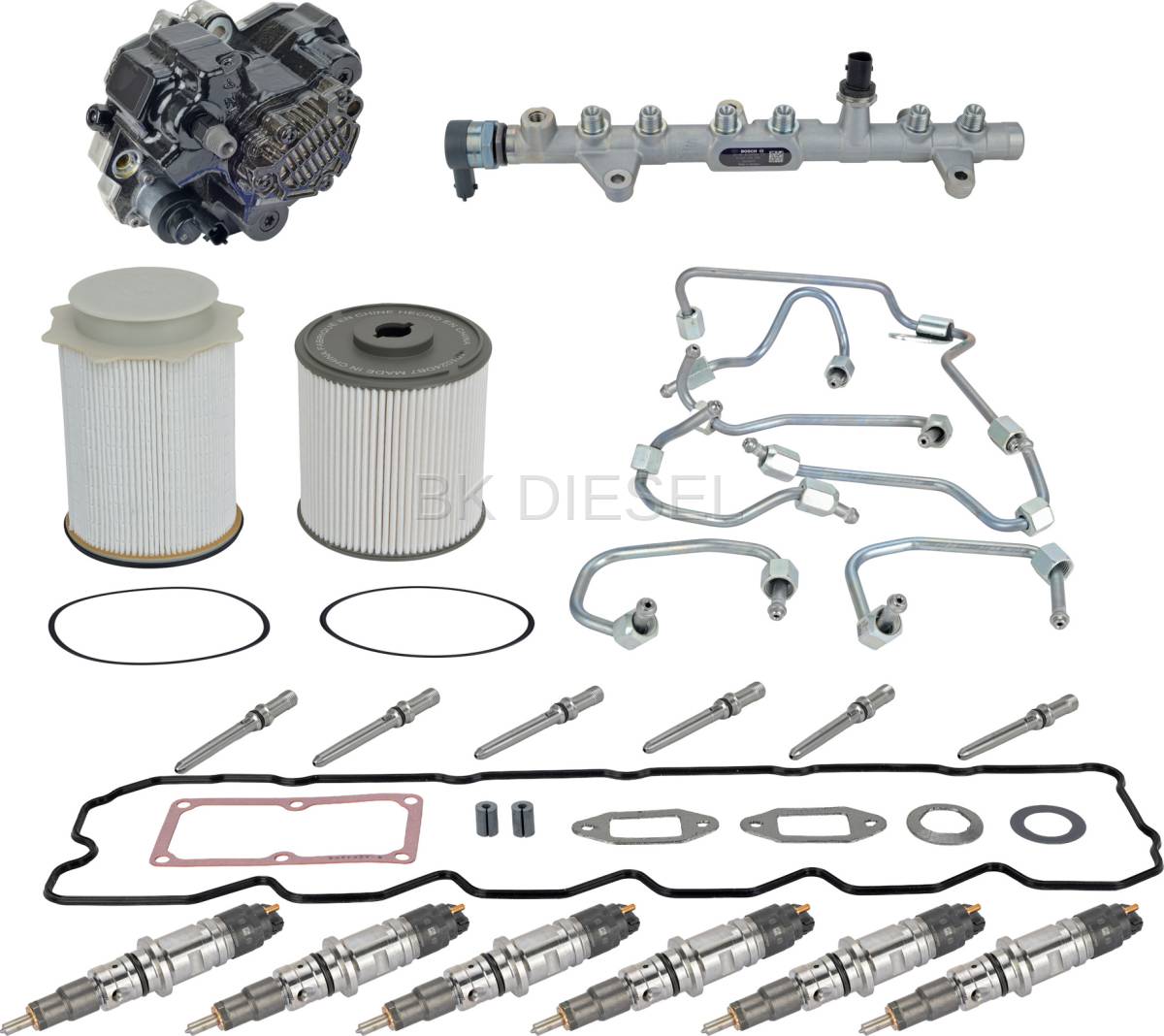 Fuel contamination kit for the 6.7L Cummins engine. This is everything you need to replace your contaminated fuel system! This kit is covered under a 3 year, unlimited mile warranty!